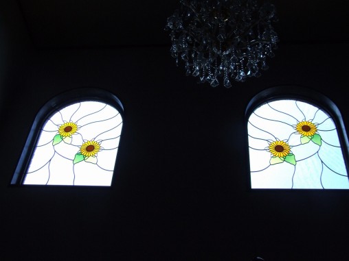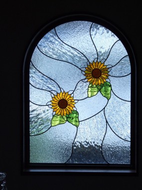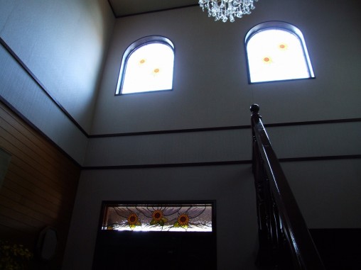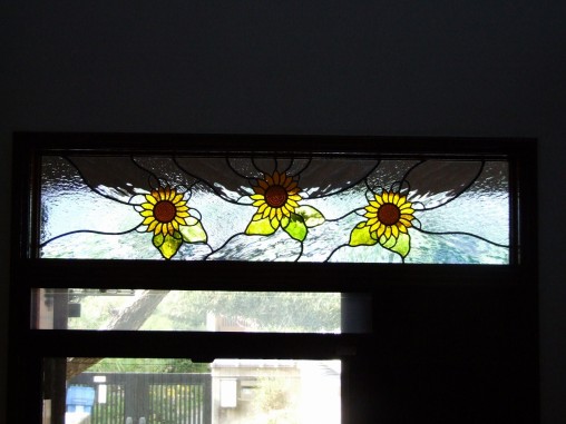 ステンドグラスの専門店戸夢窓屋 > 施工実績 > 戸建&マンション宅 > (55)大阪府 アーチ型はめ殺し窓 ひまわり&玄関ドア欄間 施工前後比較写真
