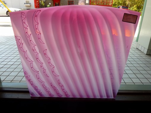 ガラスに付いているマジックの模様は型紙で取った型です、バラの花びらとして使用いたしました。
