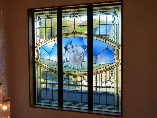 ステンドグラスの専門店戸夢窓屋 > 施工実績 > 戸建&マンション宅 > (75)大阪府吹田市M様邸② ペット犬ステンドグラス 施工前後比較写真・目隠し対策