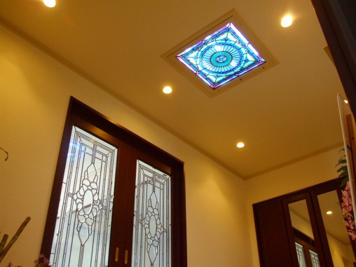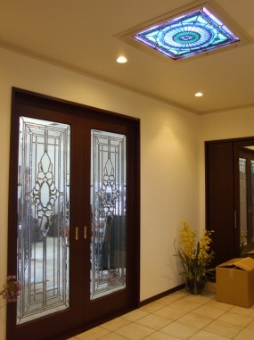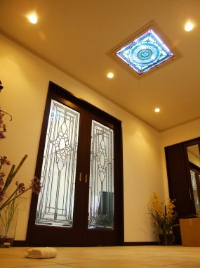 ステンドグラスの専門店戸夢窓屋 > 施工実績 > 戸建&マンション宅 > (77)大阪府大阪市Y様邸① 天井LED内蔵 引き戸 ・窓やドアに多数設置 ミサワホーム