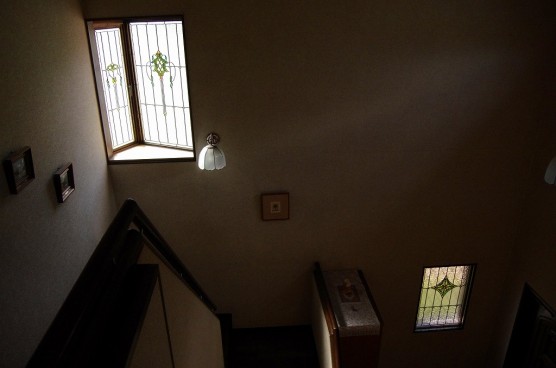ステンドグラスの専門店戸夢窓屋 > 施工実績 > 戸建&マンション宅 > (60)三重県亀山市I様邸 階段室&玄関ホール 施工前後比較写真 ・目隠し対策