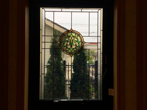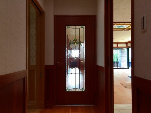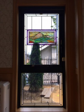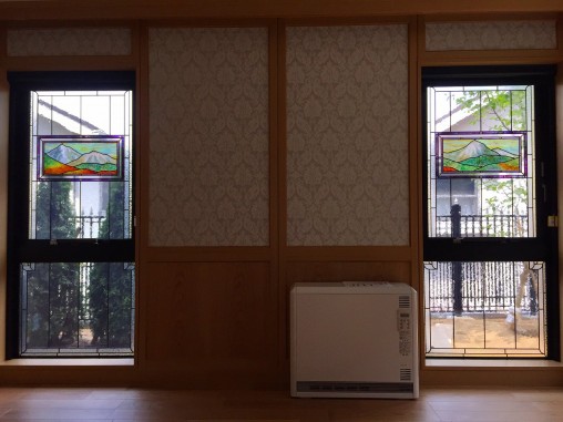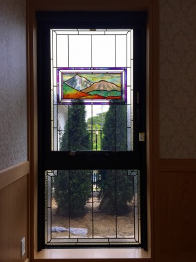 (93)大阪府吹田市K様邸① 山の風景フュージングガラス使用ステンドグラス ・窓やドアに多数設置