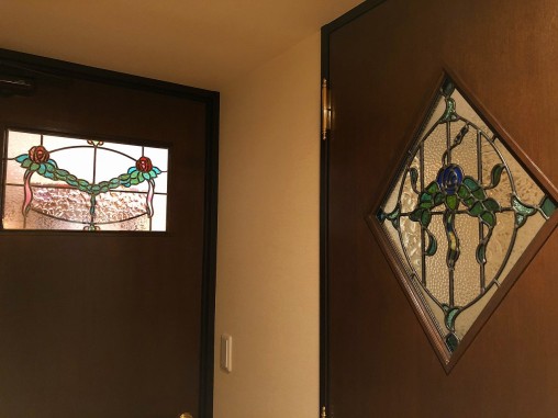 (102)京都府京都市M様邸② マンション室内ドア バラ柄ステンドグラス ドアに多数設置 新調ドアも弊社にて手配