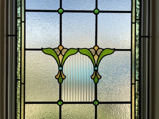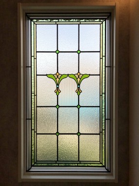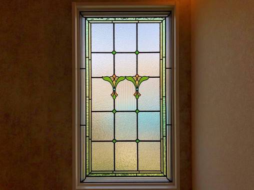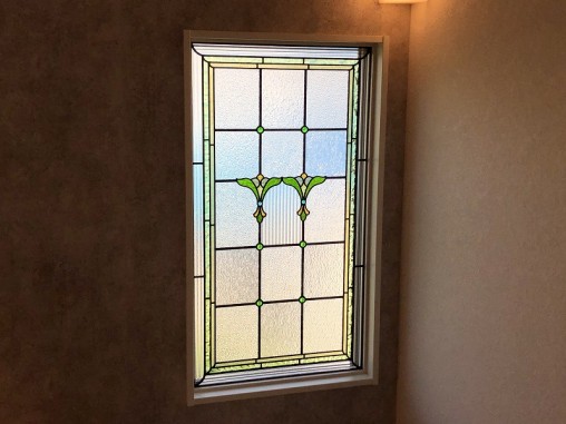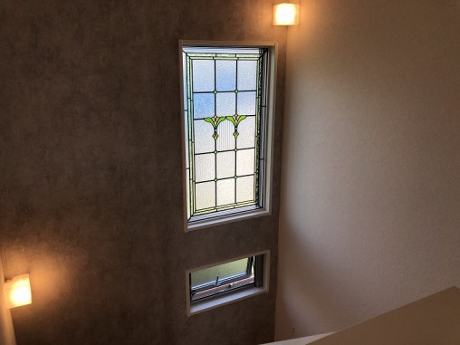 ステンドグラスの専門店戸夢窓屋 > 施工実績 > 戸建&マンション宅 > (133)兵庫県芦屋市N様邸 階段室はめ殺し窓セミオーダーTW-12(アレンジ) 施工前後比較写真