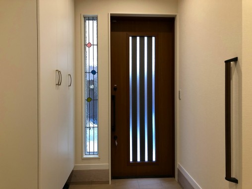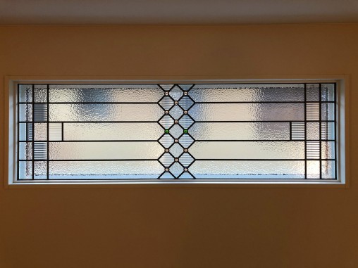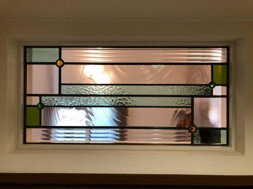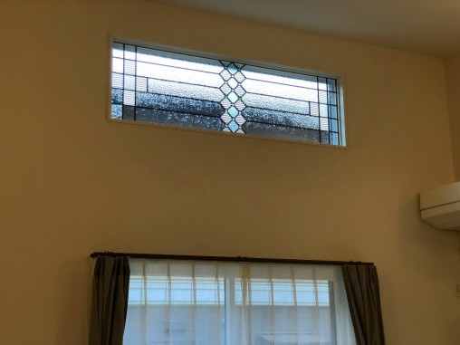 ステンドグラスの専門店戸夢窓屋 > 施工実績 > 戸建&マンション宅 > (148)滋賀県大津市A様邸 はめ殺し窓3箇所 セミオーダーTW-06&TW-11(アレンジ)設置前後比較写真 目隠し対策 ・窓に多数設置