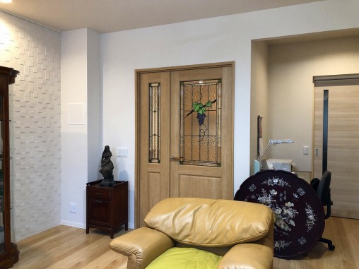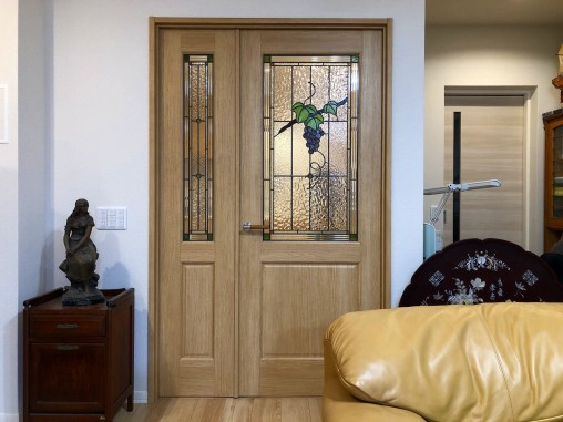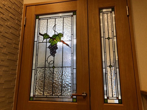 ステンドグラスの専門店戸夢窓屋 > 施工実績 > 戸建&マンション宅 > (164)大阪府堺市O様邸 リビング親子ドア ブドウ※お客様の声有り 積水ハウス