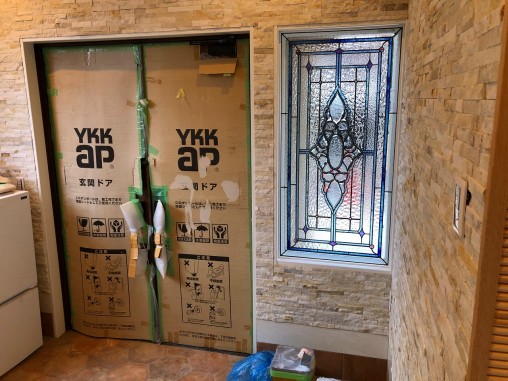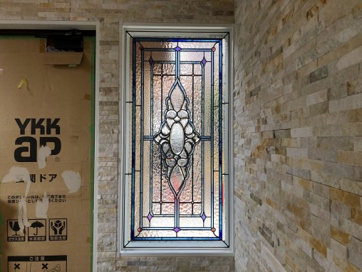 ステンドグラスの専門店戸夢窓屋 > 施工実績 > 戸建&マンション宅 > (174)兵庫県神戸市H様邸③ 玄関はめ殺し窓 目隠し対策 施工前後比較写真