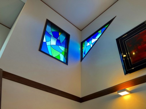 第一期工事として2箇所 S様邸①(184)&②(185)を納品させて頂き、 納品後1年以内にこちらの③(186)を納品させて頂きました。 S様邸①(184)②(185)③(186)はリフォーム時に 纏めてご提案をさせて頂きましたが 第一期工事として2箇所 S様邸①(184)&②(185)を納品させて頂き、 S様邸①(184)&②(185)の納品後1年以内に ③(186)を納品させて頂く事になりました。 こちらの窓は35年前の新築時からステンドグラスにされたいと ずっと思われていたそうです。 デザインのご希望イメージはサグラダファミリアでした。 ・設置後のお客様の声・ 先日は ステンドグラスの設置をして頂きまして 本当に本当に有難うございました。 これで35年前からステンドグラスを希望していた窓に ステンドグラスが設置されて、 とうとう玄関の空間が完成したと実感が出来て感無量です、 新築から35年が経ちましたが、 この2箇所の窓は大きくてずっと気になっていましたから ステンドグラスを入れて本当に良かったです、 一気にお家が生まれ変りました、念願が叶いました! ステンドグラスを下から見上げるも良し、 2階の踊り場から間近に眺めるも良し、とにかく最高です! そして夜、吹き抜けの照明をつけて外からステンドグラスを 見るのもすごく素敵なのです。 憧れのステンドグラスはリフォームの計画を進める時にハッと思い付き、 贅沢は承知で思い切って実行に移し、 そして何より戸夢窓屋さんと出会えて本当によかったです、 ありがとうございました。 毎日すごく嬉しいですし、見惚れていますし、 凄くキレイで感動しています、贅沢してよかったです(笑) もしステンドグラスを考えている人がいたら、 思いっきり戸夢窓屋さんをお薦めします! これからも、ますます素敵なステンドグラスを作って下さいね、 この度は誠に有難うございました! |
