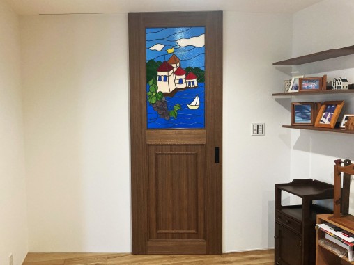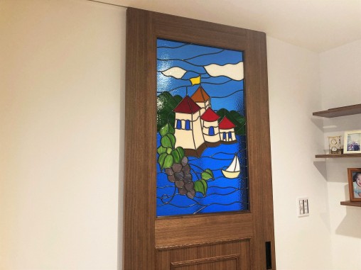 ステンドグラスの専門店戸夢窓屋 > 施工実績 > 戸建&マンション宅 > (197)石川県金沢市O様邸 リビング引戸 お客様のスケッチを元に制作