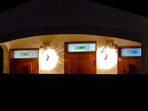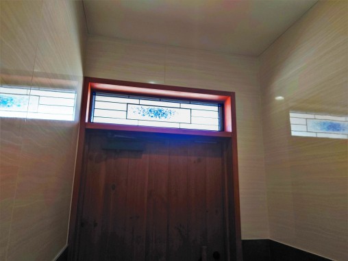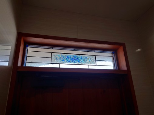 (203)滋賀県高島市Y様邸別荘③ 玄関ドア欄間3箇所3色(青色・緑色・アンバー色)