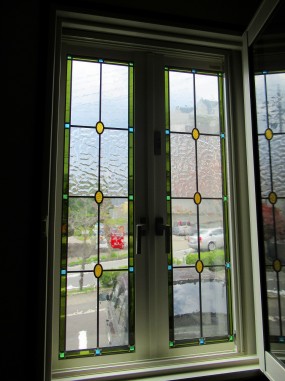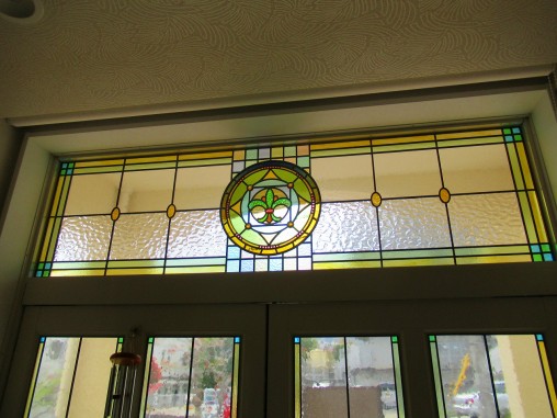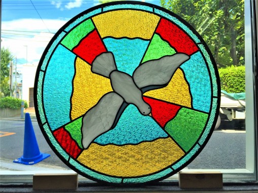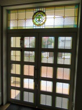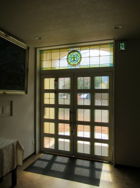 ステンドグラスの専門店戸夢窓屋 > 施工実績 > 店舗&公共施設 > (44)兵庫県宝塚市 宝塚チャペル 十字架型 丸窓 欄間 両開きドア&窓 合計21枚 ・窓やドアに多数設置