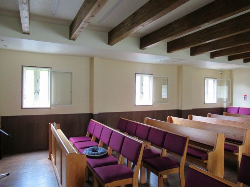 ・クライストコミュニティー宝塚チャペル 変形窓(十字架型)はめ殺し 1箇所 丸形はめ殺し窓 1箇所 両開き窓 2枚1セット×3箇所 玄関両開きドア 10枚1セット×2箇所 欄間 はめ殺し窓 1枚 |