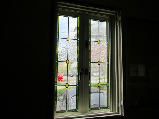 お客様から大まかなご希望をお聞きし、全体的なデザインや使用する色ガラスは 当社にお任せでプランをさせて頂きました。 十字架にはフリモント社やランバーツ社の上質なアンティークガラスを使用して 朝日が当たる時間帯には床への映り込みが非常にきれい見えると お客様からお喜びの声を頂いております。 |