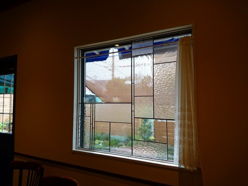 色ガラスを一切使用せず、透明の輸入型板ガラスのみを使用し プランナーの方が描かれたデザインを元に制作を致しました。 同じデザインで4枚並べて設置しておりますが デザインの上下を交互に設置する事で 全体的に動きをつける事が出来ました! オーナー様から 「お客様からも大変好評でとても気に入っています」 とのお声も頂いております。 実際にステンドグラスが設置された店内でお茶をしていると、 ステンドグラスがある事でとても高級感と重厚感があり、 お店のインテリア全体の雰囲気を高めてくれていると感じました! 透明のガラスしか使用しておりませんが やはり本物のステンドグラスは存在感が違います! お店ですので外から程好く店内が見えた方が良いですが 店内のお客様にとってはある程度外部からの視線を遮らないといけないと言う 両方の要素がこのステンドグラスで解消されていると感じました! 透明のステンドグラスも上品でオススメです! パティスリーウグイスヤ 様 https://www.uguis-ya.com/cafe |