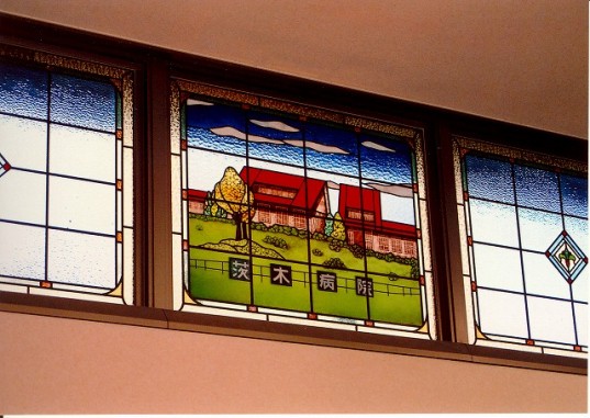 ステンドグラスの専門店戸夢窓屋 > 施工実績 > 店舗&公共施設 > (19)大阪府茨木市 茨木病院様 エントランス 絵付け お客様の原図を元に制作
