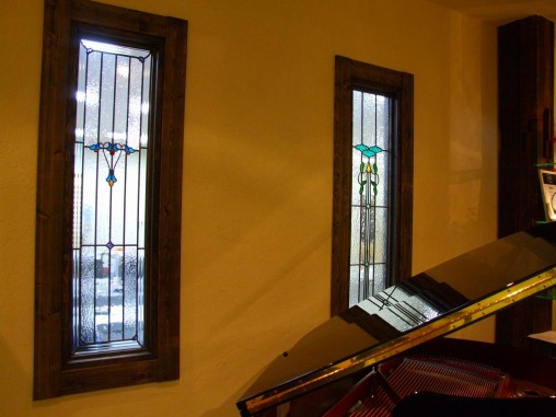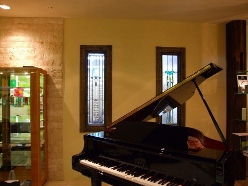 セミオーダーステンドグラス TW15 TW17 ショールーム入口正面の壁に ステンドグラスを2枚並べて設置させて頂きました。 設置の目的は、 お客様を最初にお迎えする入口正面にステンドグラスを設置する事で、 ご来場されるお客様にオシャレな雰囲気を感じて頂き、 また裏側の事務所側からも程好くお客様が見えるようになっております。 また通常2枚並べてステンドグラスを設置する場合は デザインを揃えて使用する場合は多いですが、 ショールームという事であえて2枚別のデザインにして サンプルとしてもご利用頂いております。 |