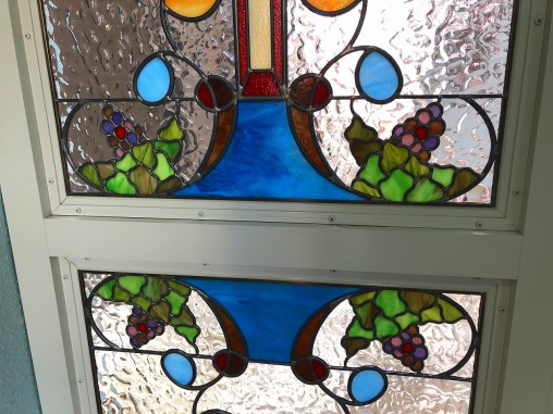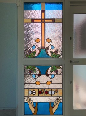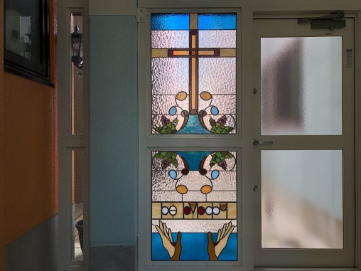 (58)滋賀県大津市 大津キリスト教会様② 玄関ドア横はめ殺し窓 目隠し対策 お客様のスケッチを元に制作