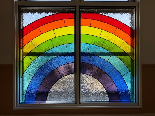 ステンドグラスサイズ約W800×H1400 2枚 虹のデザイン