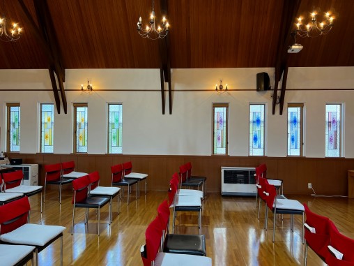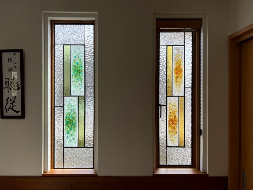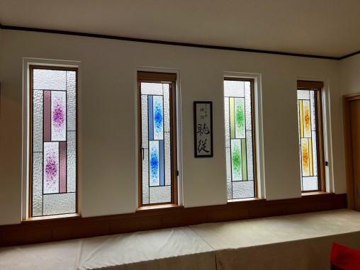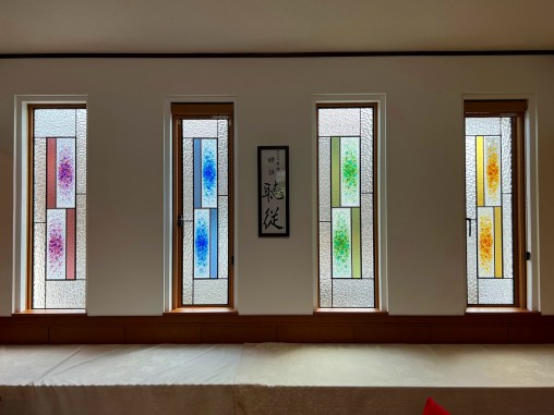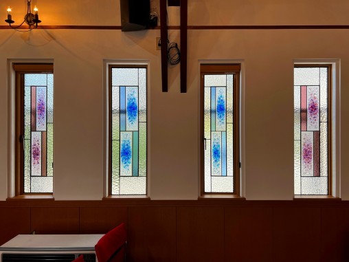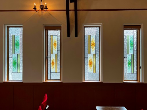 ステンドグラスの専門店戸夢窓屋 > 施工実績 > 店舗&公共施設 > (75)奈良県橿原市 橿原ルーテル教会 礼拝堂 はめ殺し窓&たて滑り出し窓 20枚(納骨堂含め合計23枚)
