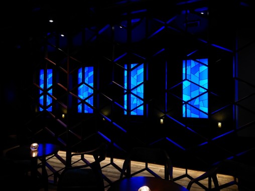 ステンドグラスの専門店戸夢窓屋 > 施工実績 > 店舗&公共施設 > (81)大分県大分市 BAR Babymoon様① アプローチ LED内蔵ステンドグラス※お客様の声有り