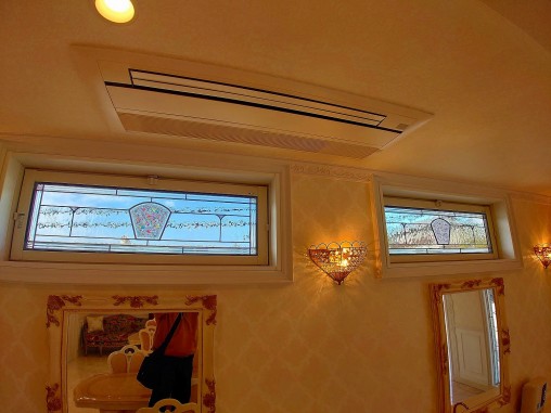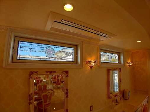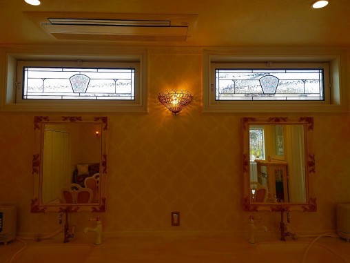 (87)山口県下関市 某化粧品メーカー個人サロン④ 洗面台上部 横滑り出し窓ダイクロ使用
