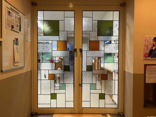 ステンドグラスの専門店戸夢窓屋 > 施工実績 > 店舗&公共施設 > (91)兵庫県神戸市 吉岡興業様 オフィス入口両開きドア